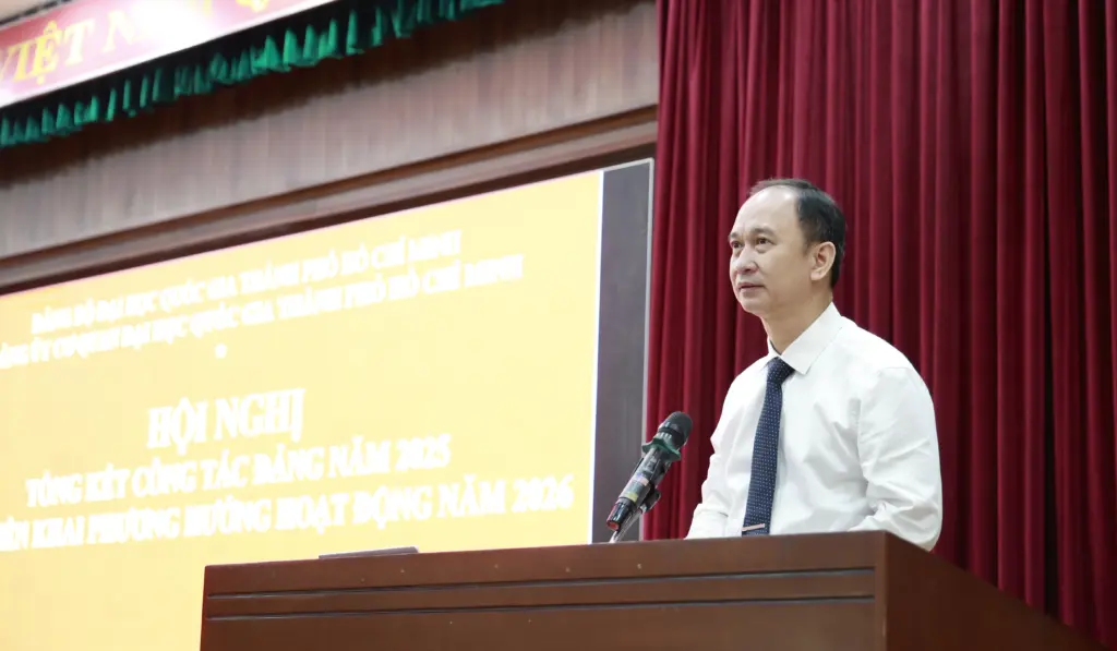 Sáng 23/01/2026, Đảng ủy Cơ quan ĐHQG-HCM tổ chức Hội nghị tổng kết công tác Đảng năm 2025 và triển khai phương hướng hoạt động năm 2026. Hội nghị nhằm đánh giá kết quả lãnh đạo, chỉ đạo thực hiện nhiệm vụ chính trị, công tác xây dựng Đảng trong năm 2025; đồng thời xác định phương hướng, giải pháp nâng cao chất lượng hoạt động của Đảng bộ trong thời gian tới.